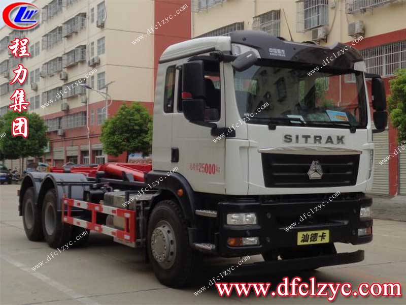 上圖為(國六)重汽汕德卡勾臂垃圾車