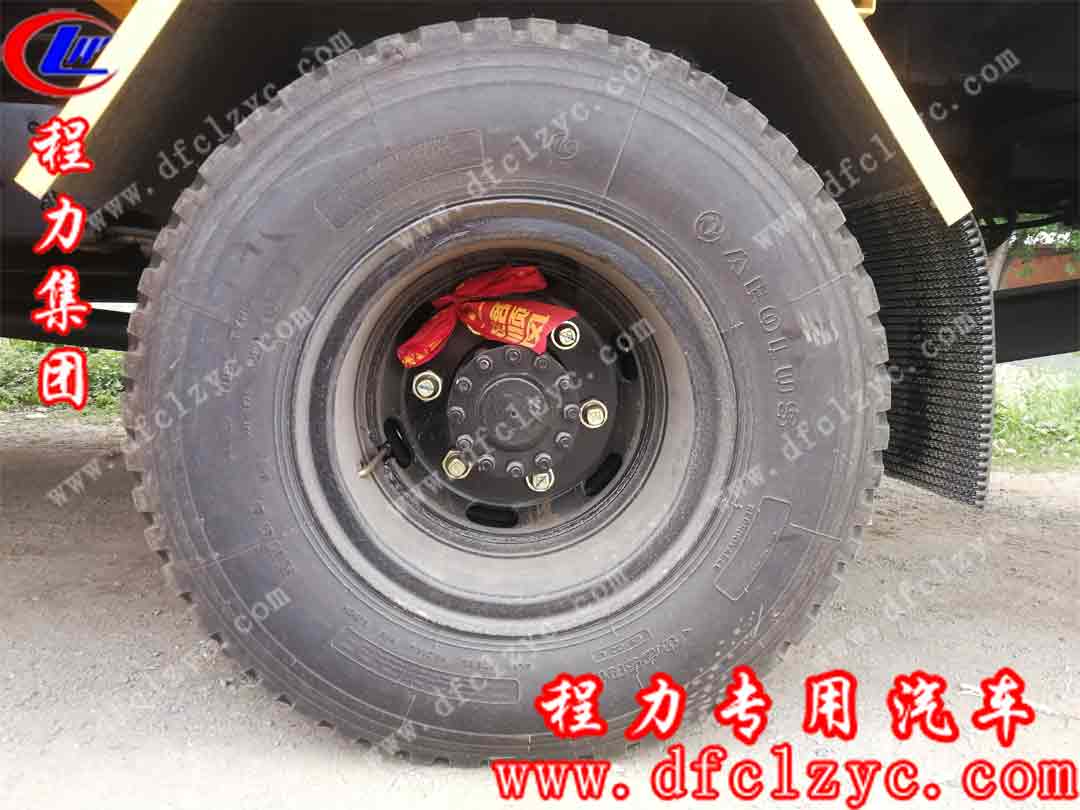 上圖為湖北程力東風(fēng)大多利卡D8隨車吊一拖二清障兩用車輪胎