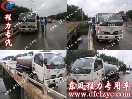 湖北程力東風(fēng)福瑞卡灑水車雨中“玩?!?BR>