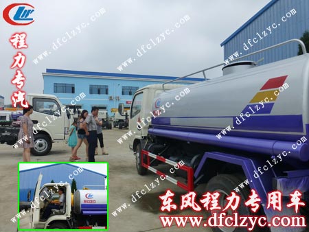 中標(biāo)環(huán)衛(wèi)車之一:東風(fēng)小霸王灑水車,在銷售經(jīng)理的帶領(lǐng)下來(lái)到灑水車停放區(qū),剛下線的5噸灑水車整體線條飽滿,同行的用戶還新自試駕了該車,感受該車的駕駛空間及性能。