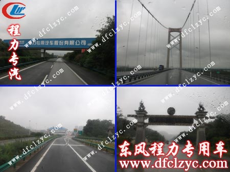 此為第二階段——送車途中。該東風145灑水車上高速,一路行駛,突然好似看到了熟悉的標志,熟悉的名稱,走進一看,原來真是程力專用汽車股份有限公司的名稱及標志,就似出門在外遇見同鄉(xiāng)一樣的親切。在往前走便是陽邏大橋,看一眼江面,盡是一片繁忙景象。接著往前走,然后出收費站,繼續(xù)前往九江。
