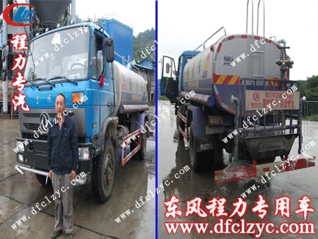 送車的整個過程包括發(fā)車、送車途中及交付客戶手中這三個環(huán)節(jié)。目前屬于第一階段——發(fā)車,這是東風145灑水車在門口留影,從背景上還能清晰的看到“程力威中國…”幾個字樣,完整的一句是“程力威中國馳名商標”,這代表著我司的榮譽,因為程力專用汽車股份有限公司是中國唯一一家榮獲“中國馳名商標”的專用汽車制造企業(yè)。