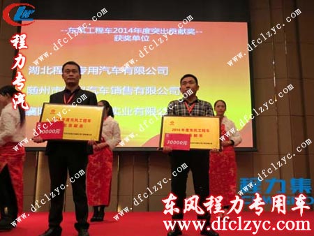 年會(huì)上,東風(fēng)公司表示2014年取得的成績(jī)離不開優(yōu)秀的人才和合作伙伴的支持,并給2014年獲得優(yōu)異成績(jī)的合作伙伴進(jìn)行了頒獎(jiǎng),湖北程力公司榮獲東風(fēng)股份公司“2014年度杰出合作伙伴”,東風(fēng)公司工程車事業(yè)部頒發(fā)的“2014年度東風(fēng)工程車突出貢獻(xiàn)獎(jiǎng)”,相信在良好的合作基礎(chǔ)和政策支持下,湖北程力公司和東風(fēng)公司在專用車合作將有更好的明天。