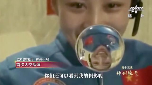 2013年6月 神舟十號(hào) 首次太空授課:透過(guò)它,你們還可以看到我的倒影呢!