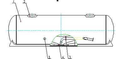 罐體總成主要由筒體、加料口、流態(tài)化床、出料管總成、進(jìn)氣管及其它附件組成,如圖一所示。罐體為直筒圓柱式結(jié)構(gòu),其制作工藝良好,能實(shí)現(xiàn)埋弧焊接,筒體采用5mm優(yōu)質(zhì)鋼板卷制而成,兩端采用6mm 厚標(biāo)準(zhǔn)橢圓封頭,焊接牢固,具有整體強(qiáng)度高、剛性好、承壓好、使用性能好等特點(diǎn)。罐體為單倉(cāng)兩氣室式結(jié)構(gòu),罐內(nèi)流化床寬度適中,布置合理,能有效的縮短卸料時(shí)間、提高了罐體的容積利用率,降低了剩灰率;在罐體頂部開(kāi)有兩個(gè)進(jìn)料口,打開(kāi)進(jìn)料口人孔蓋一方面可以向罐內(nèi)加料,另一方面在罐內(nèi)需要檢修時(shí)方便人員進(jìn)出。