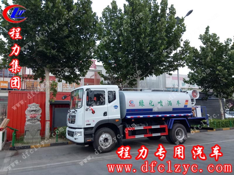 北京王總在程力專(zhuān)用汽車(chē)股份有限公司訂購(gòu)的第三輛12方東風(fēng)D9噴霧車(chē),底盤(pán)采用康明斯180馬,東風(fēng)六檔變速箱,原裝空調(diào),電動(dòng)玻璃,帶方向助力、ABS、行車(chē)記錄儀。罐體做防腐,駕駛室室內(nèi)加裝氣動(dòng)閥開(kāi)關(guān)。上裝專(zhuān)用功能為:前沖后灑,罐體后帶工作平臺(tái),平臺(tái)上安裝綠化灑水高炮,炮可噴灑農(nóng)藥,并有多種雨?duì)羁烧{(diào)節(jié)(大雨、中雨、毛毛雨、霧狀),配備全國(guó)質(zhì)量評(píng)比第一名的程力威大功率專(zhuān)用灑水泵,泵可自吸自排,帶自流閥,帶消防接頭,帶過(guò)濾裝置。