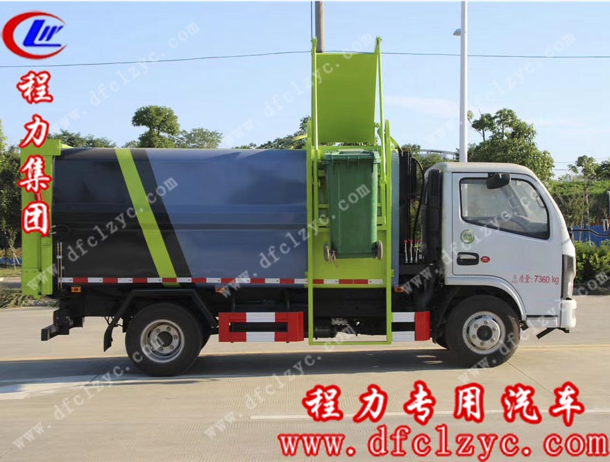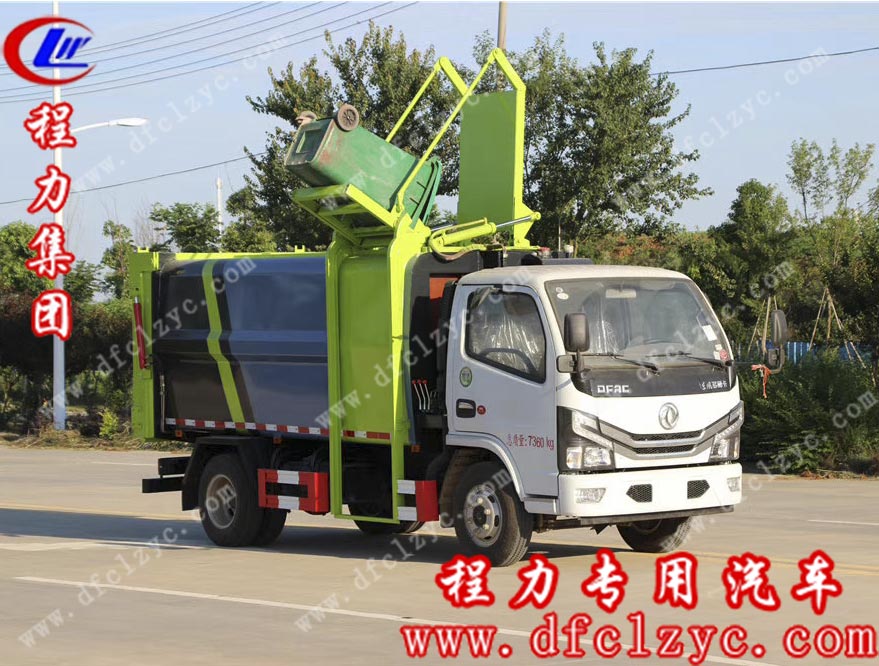 上圖為湖北程力集團(tuán)生產(chǎn)的國(guó)六東風(fēng)小多利卡壓縮式對(duì)接垃圾車