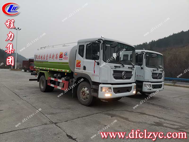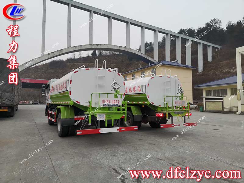 程力集團(tuán)東風(fēng)D9多功能綠化灑水車,采用東風(fēng)公司原裝底盤,新款平頭駕駛室?guī)ХD(zhuǎn),正宗國(guó)六排放標(biāo)準(zhǔn),康明斯柴油環(huán)保發(fā)動(dòng)機(jī),210馬力,軸距2950,原廠空調(diào),罐體容積約12方,專用功能為前沖后灑帶側(cè)噴,罐體后部帶工作平臺(tái),平臺(tái)上安裝綠化灑水高炮,炮可噴灑農(nóng)藥,并有多種雨?duì)钫{(diào)節(jié)(大雨,中雨,毛毛雨,霧狀),配備大功率灑水泵,泵可以自吸自排,帶消防接頭,帶過濾裝置。根據(jù)劉總的要求在罐體上噴上客戶公司的logo圖案和文字。